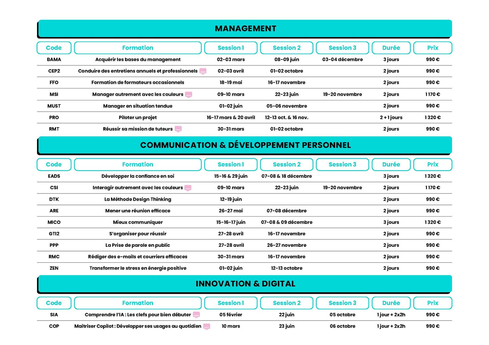 Chaque formation est ajustée au contexte, aux métiers et aux enjeux de l’entreprise.