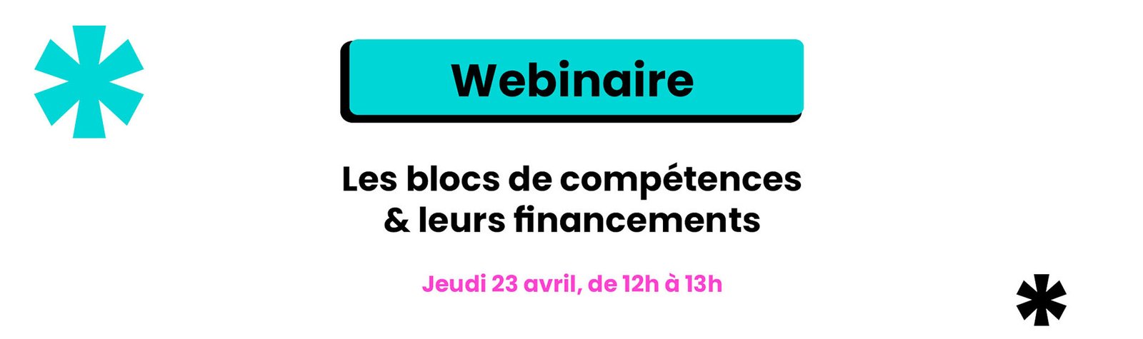 Vous souhaitez en savoir plus sur nos blocs de compétences et les financements dont vous pouvez bénéficier pour les membres de votre équipe ? Nous vous donnons rendez-vous le 23 avril pour un webinaire dédié, un temps d’échange au cours duquel nous aborderons :